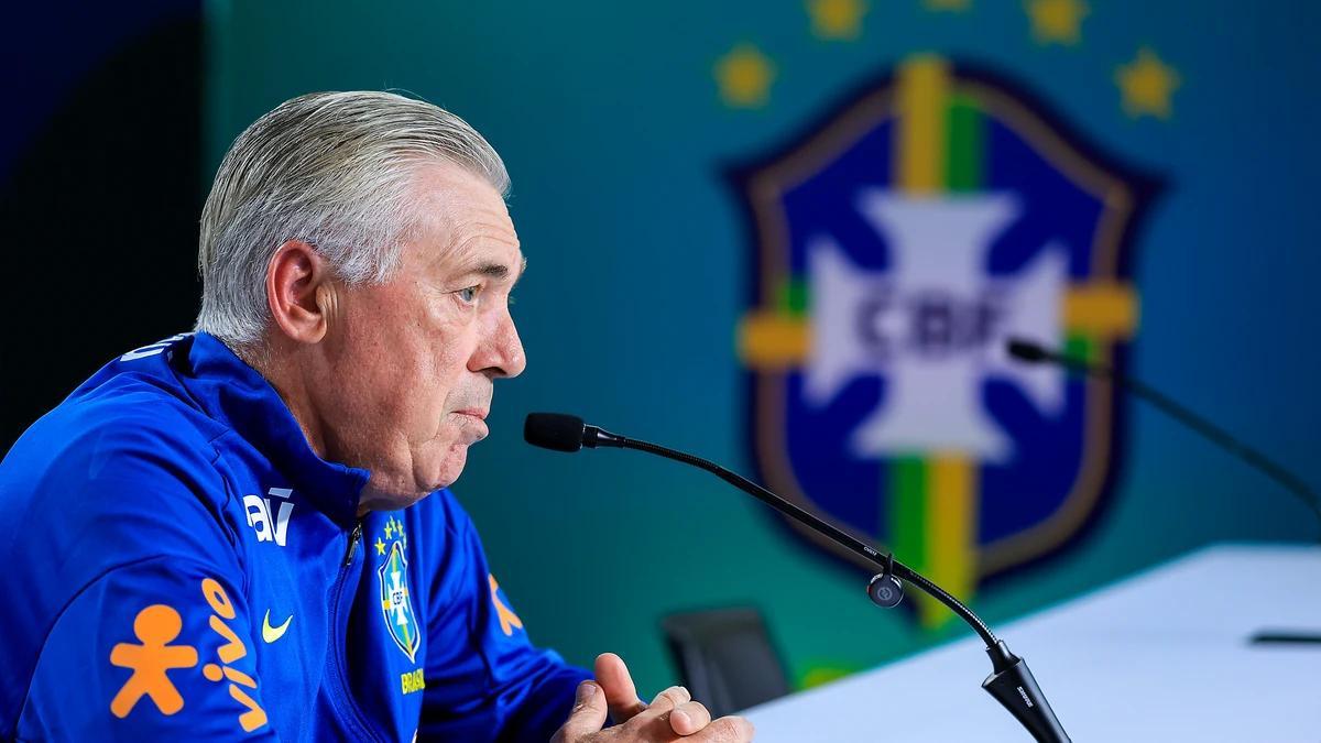 世预赛客战玻利维亚赛前,巴西队主帅安切洛蒂出席了新闻发布会。
